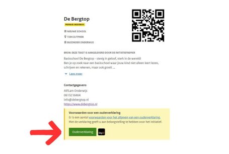- Scan de QR-code of klik op de rode knop Ouderverklaring invullen.